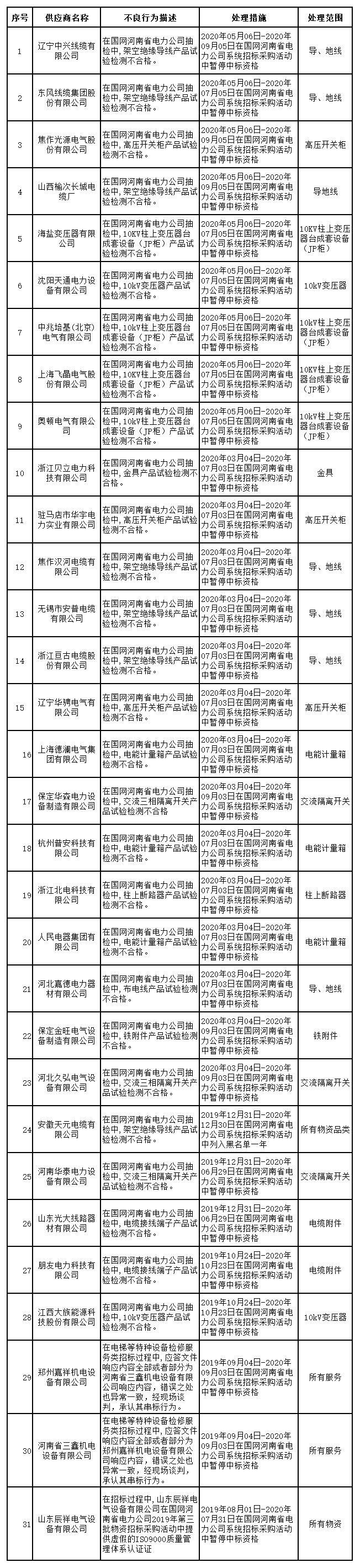 国网河南2020年第二批供应商不良行为处置通报 - 无图版