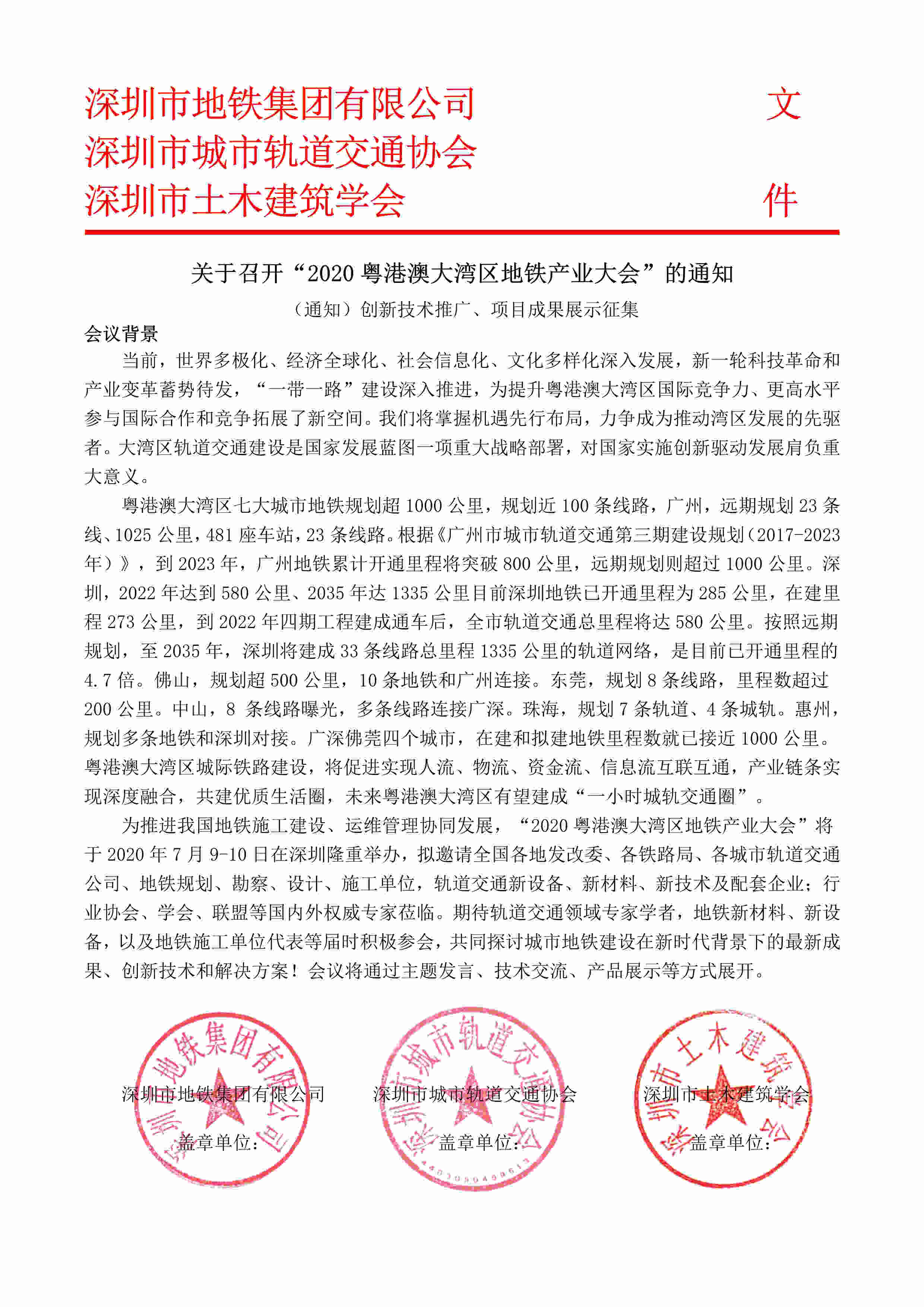 关于召开“2020粤港澳大湾区地铁产业大会”的通知(完整版)