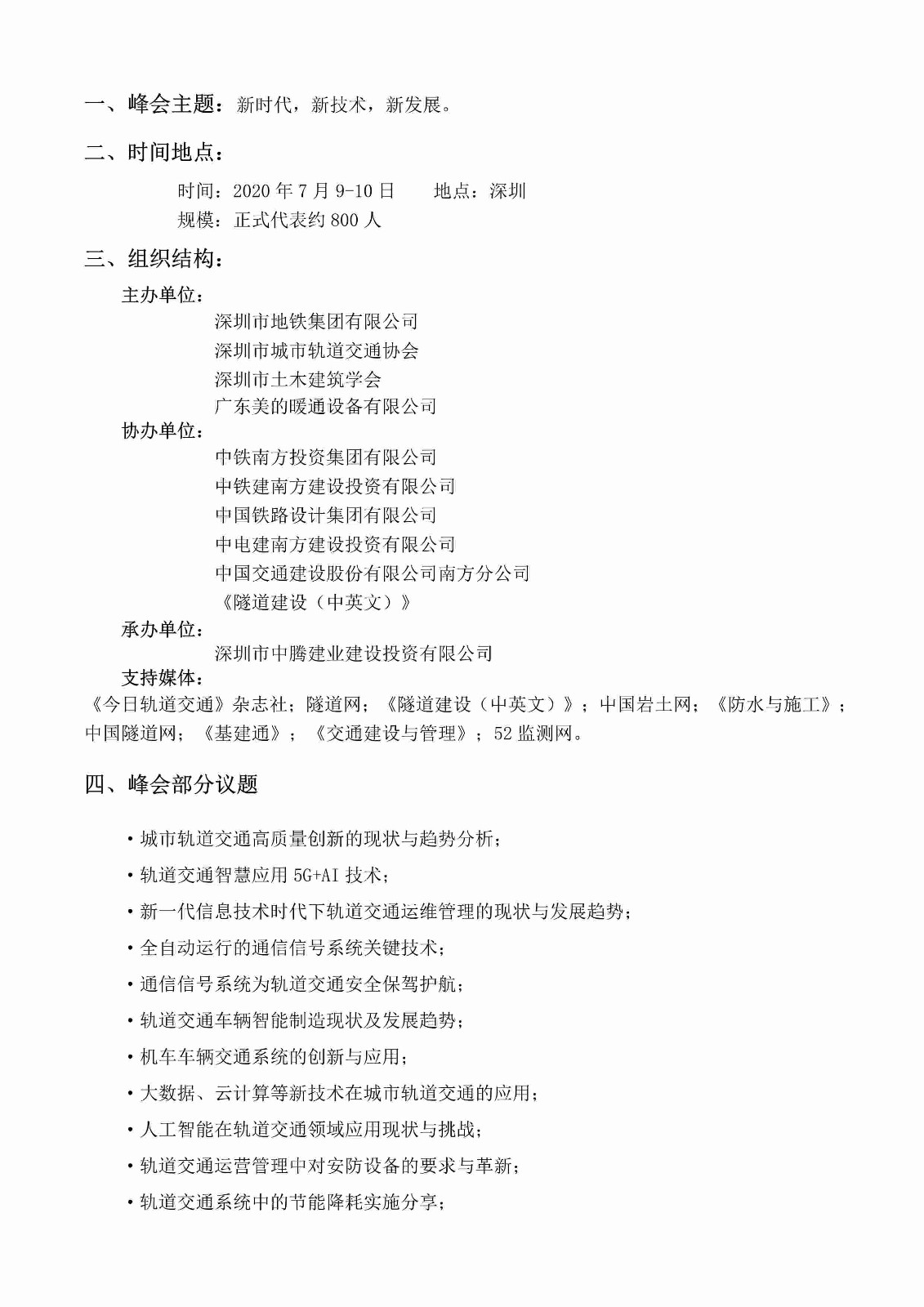 关于召开“2020粤港澳大湾区地铁产业大会”的通知 - 无图版
