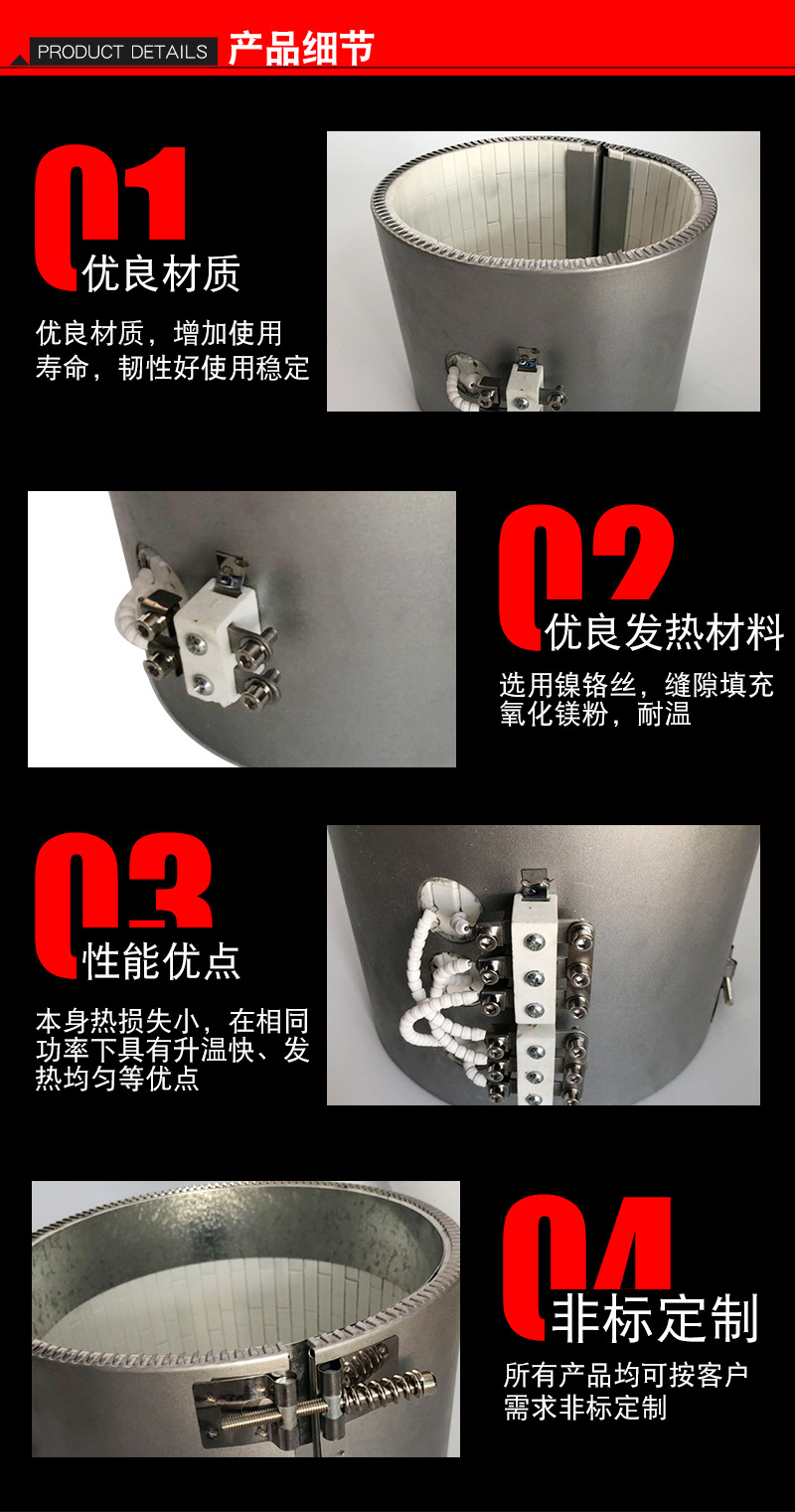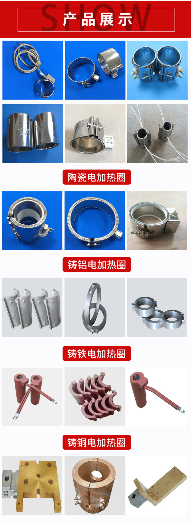 铸铜加热块,铸铝加热块,陶瓷加热瓦,不锈钢加热圈是挤出机等塑料加工机械核心零部件,属于易损件,除了人为损坏外,主要是由于加热合金线烧断,导致加热块、加热圈失去功能。