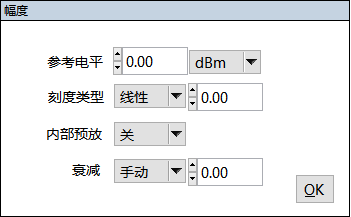 点击“幅度控制”界面,对参考电平、衰减完成自动、手动选择。