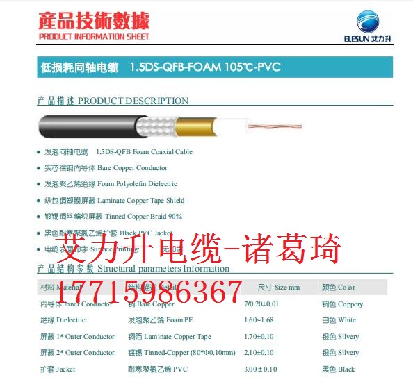 电线电缆网 > 通讯电缆 > 厂家直销国产50-1.5(代替dacar140)、50-2(代替dacar302),1.5D-2V,1.5DS-QFB江苏艾力升电缆-诸葛经理17715986367(完整版)