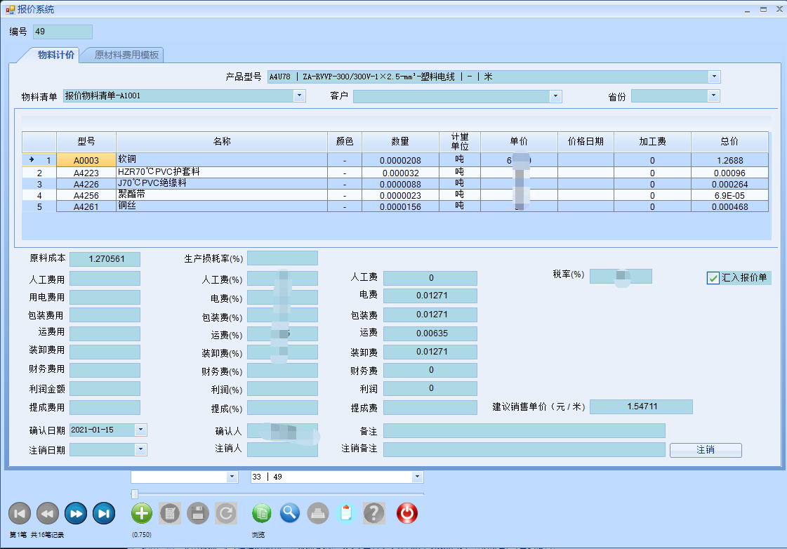 电线电缆网 > 线缆设计|参数计算 > 今年研发的报价系统,可免费试用,希望有人指点并做修改(完整版)