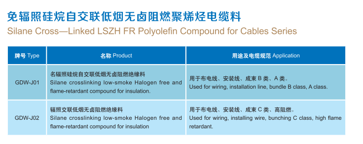 本公司生产制造两种类型的硅烷交联低烟无卤绝缘料