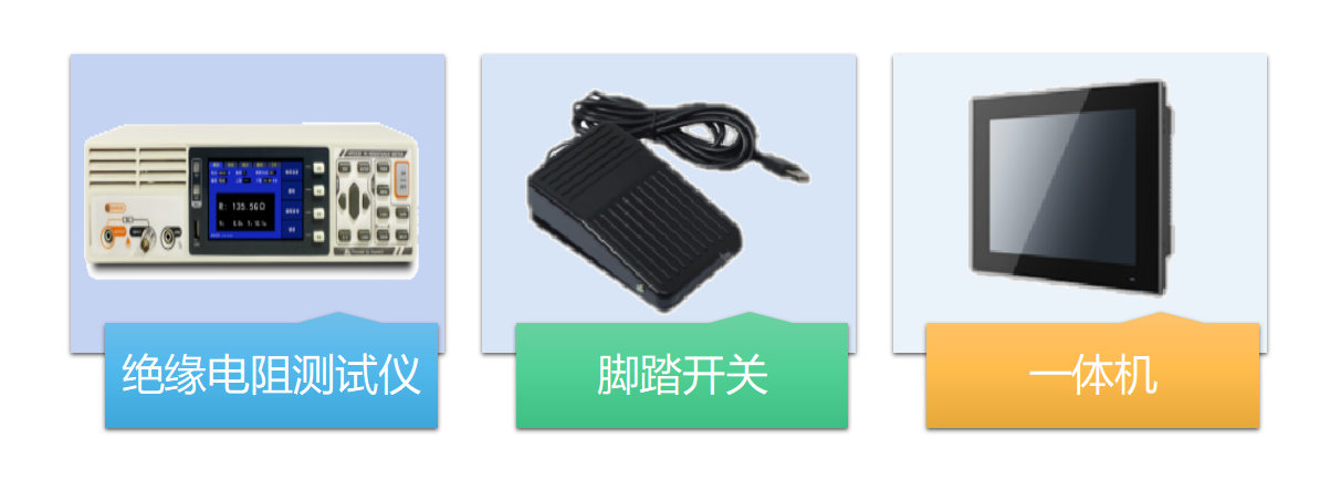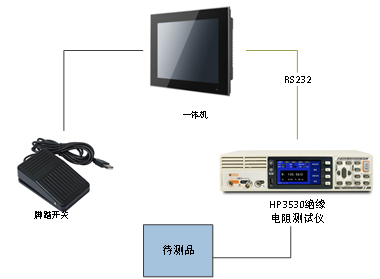 绝缘电阻测试系统由防爆一体机、HP3530绝缘电阻测试仪、待测绝缘电阻及脚踏开关组成。