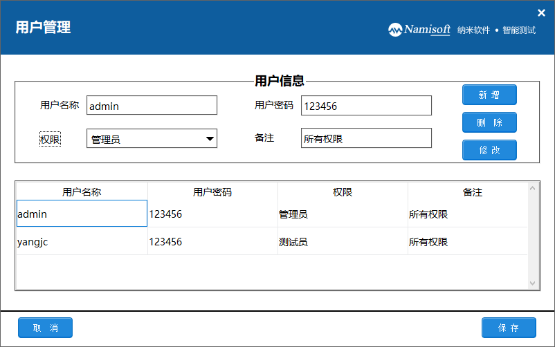 l 软件具有管理员和测试员两种权限的设置,增强了系统的管理功能;
