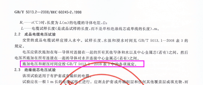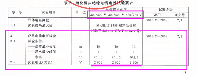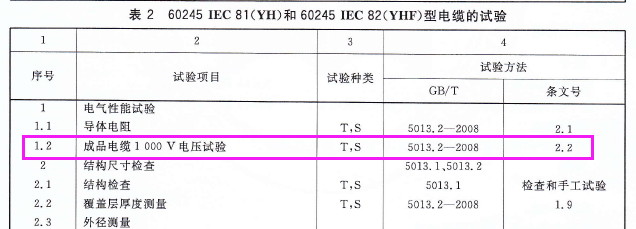 对于GB/T5013中YH与YHF型电焊机用电缆成品电缆1KV电压测试,究竟该用什么样的测试条件才可以呢??标准条款中明确规定额定电压不做规定,可检验项目里面试验方法按GB5013.2-2008 2.2条款,而2.2条款又写按照GB5013.1-2008 表3 ,可表3里面根本就没有规定1KV的测试条件,也无法参照对应额定电压,查看了1997版与2008版都是一样的描述。