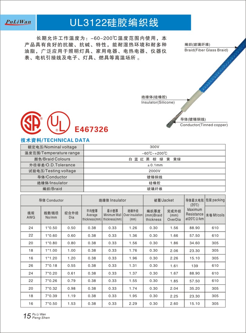 9、UL3122硅胶编织线: