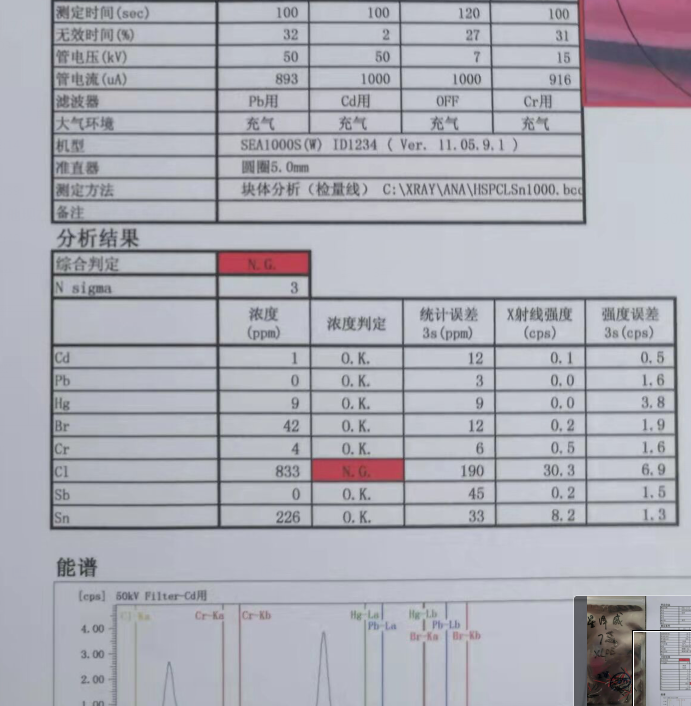有客户拿我们的低烟无卤线去检测。结果是CL+Br小于1500mmp,为什么测试结果是不通过呢?