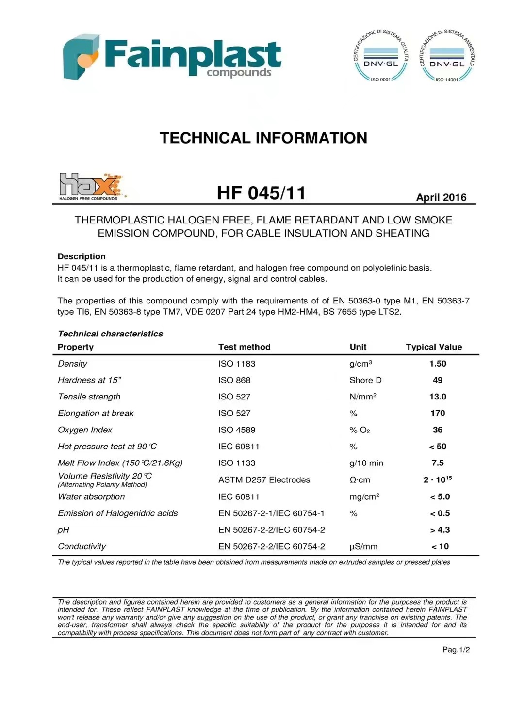 意大利无卤阻燃PE(Fainplast HF 045/11) - 无图版