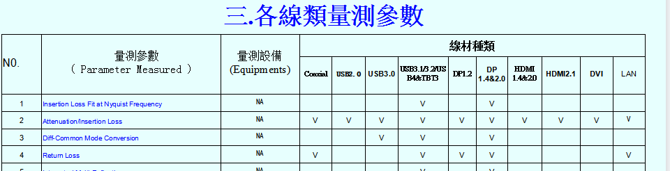 PPT里面有各种cable高频测试项目以及高频各个参数中英文对照和解析,还有每种cable线材结构