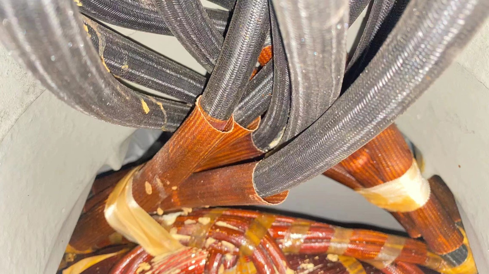 低压耐温电缆,看这结构和线芯,应该是大电流大功率电机用的,型号暂时看不出来。