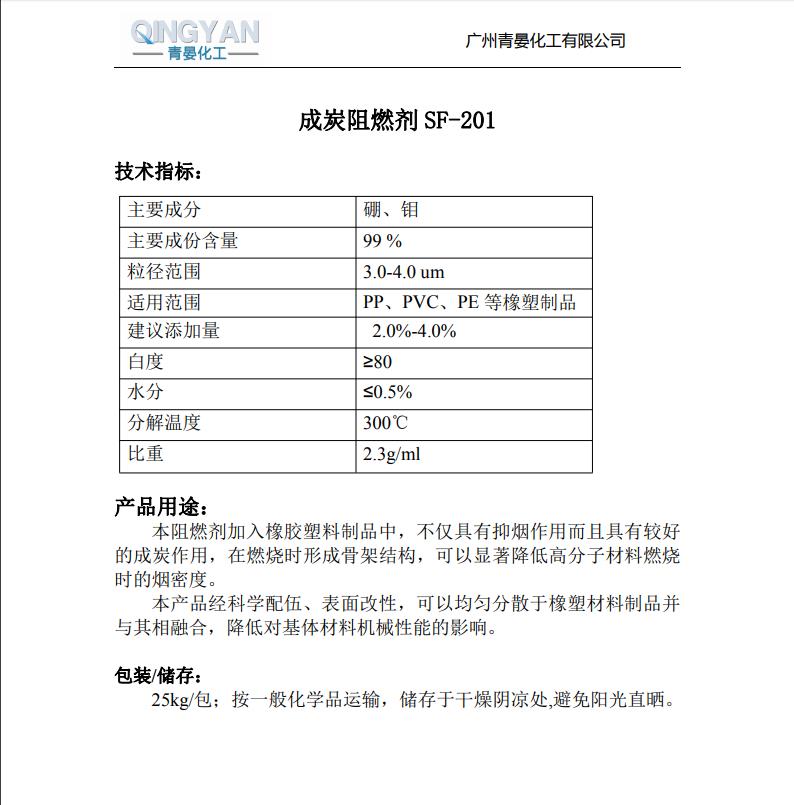 一款能通过成束燃烧低烟无卤成炭剂SF-201 - 无图版