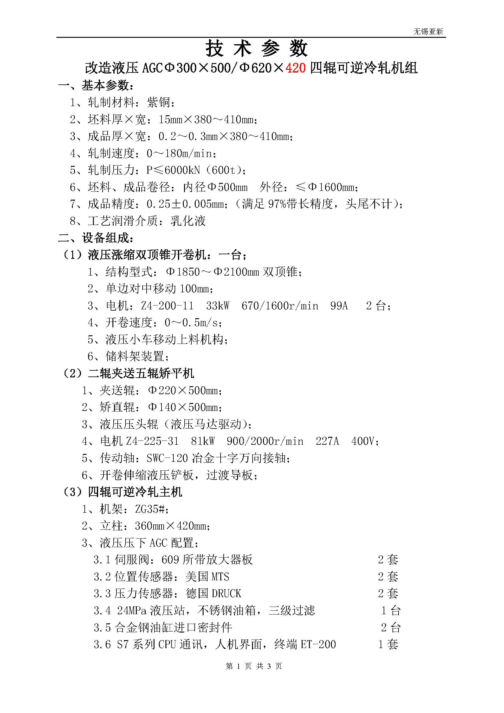 电线电缆网 > 线缆机器设备 > 闲置450AGC四辊轧机开坯和六辊精轧各一台(完整版)