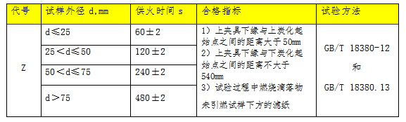 阻燃电线电缆燃烧特性代号