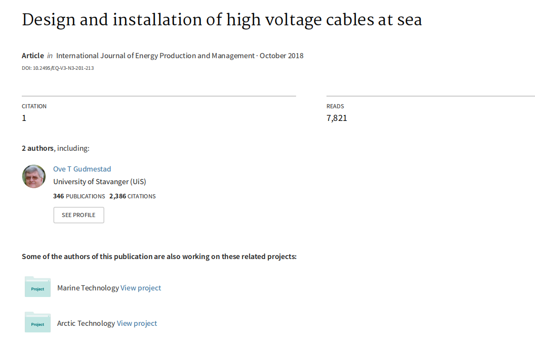斯塔万格大学---海上高压电缆的设计和安装(Design and itallation of high voltage cables at sea) - 无图版