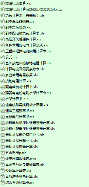 电气计算EXCEL表格汇总 - 无图版