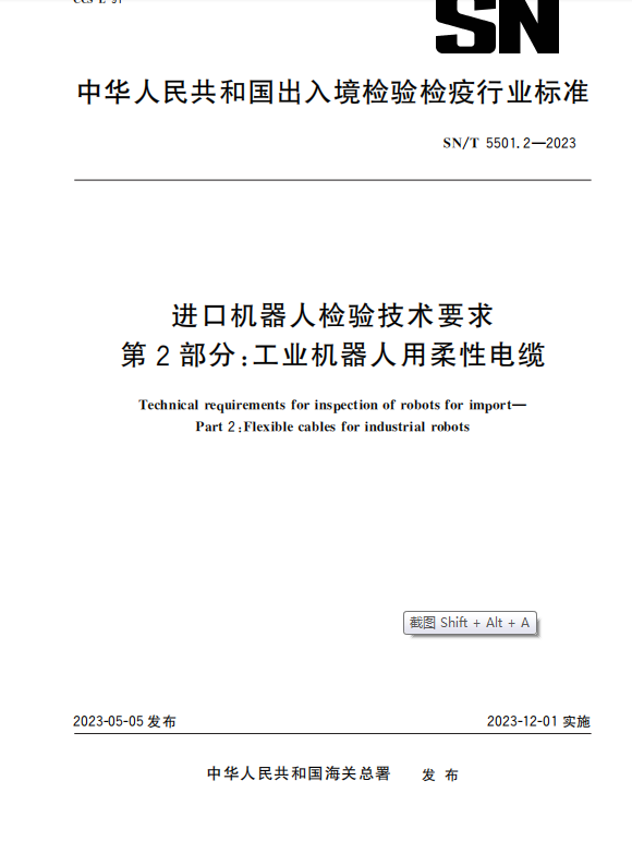 SN/T 5501.2-2023 进口机器人检验技术要求 第2部分:工业机器人用柔性电缆_水印 - 无图版
