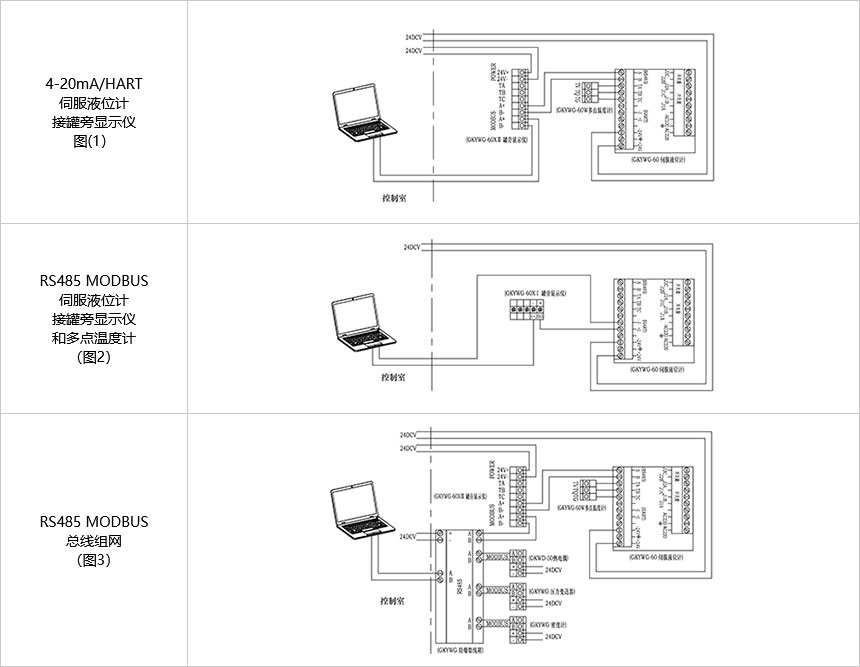 伺服液位计通信方式4-20mA/HART、RS485 MODBUS