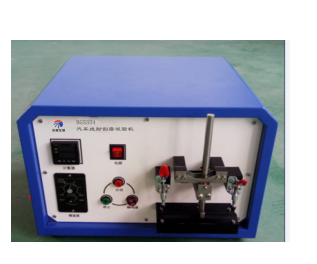 本试验机适用于检测汽车用聚氯乙烯绝缘低压电缆的绝缘耐磨强度试验,是生产汽车电线的必备检测仪器。此试验设备包含了一个设计用于刮磨绝缘表面的装置。该刮磨装置沿着电线轴线双向运动,当刮针磨穿绝缘与导体接触时,设备自动停止工作,当前计数器停止计数.当计器到达设定次数时本机会自动停止工作.