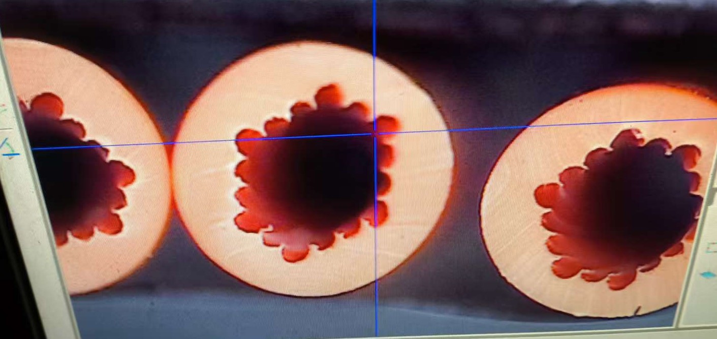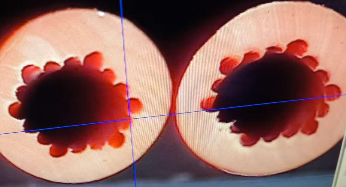 确定是束线时不圆吗,挤出压力大,张力小,放线、进线抖动也会造成的