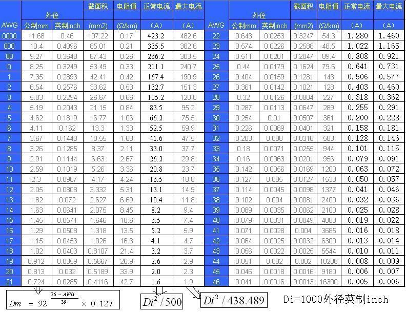 电线电缆网 > 新手区 > 重发完美画面!AWG线规!(完整版)