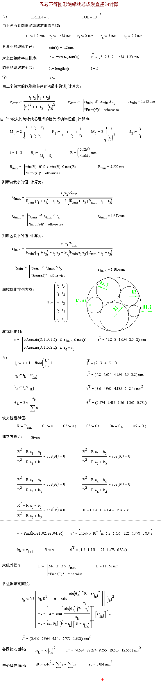 五芯不等圆形绝缘线芯成缆直径的计算 - 无图版