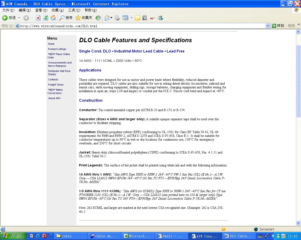 CAROL SUPER(原始供应商名称) VV-TRON(不明白什么意思) I/O AWG(1/0AWG导体规格) 90C DLO (耐温等级) 2000V(电压等级) P102 (不明白) MSHA (也不明白) CSA RQ90 EP (绝缘材料-乙丙橡胶)100V (-40C) FT1 FT4 (UL燃烧等级) OUTDOOR(室外应用) LL9993(应该是物料代码)