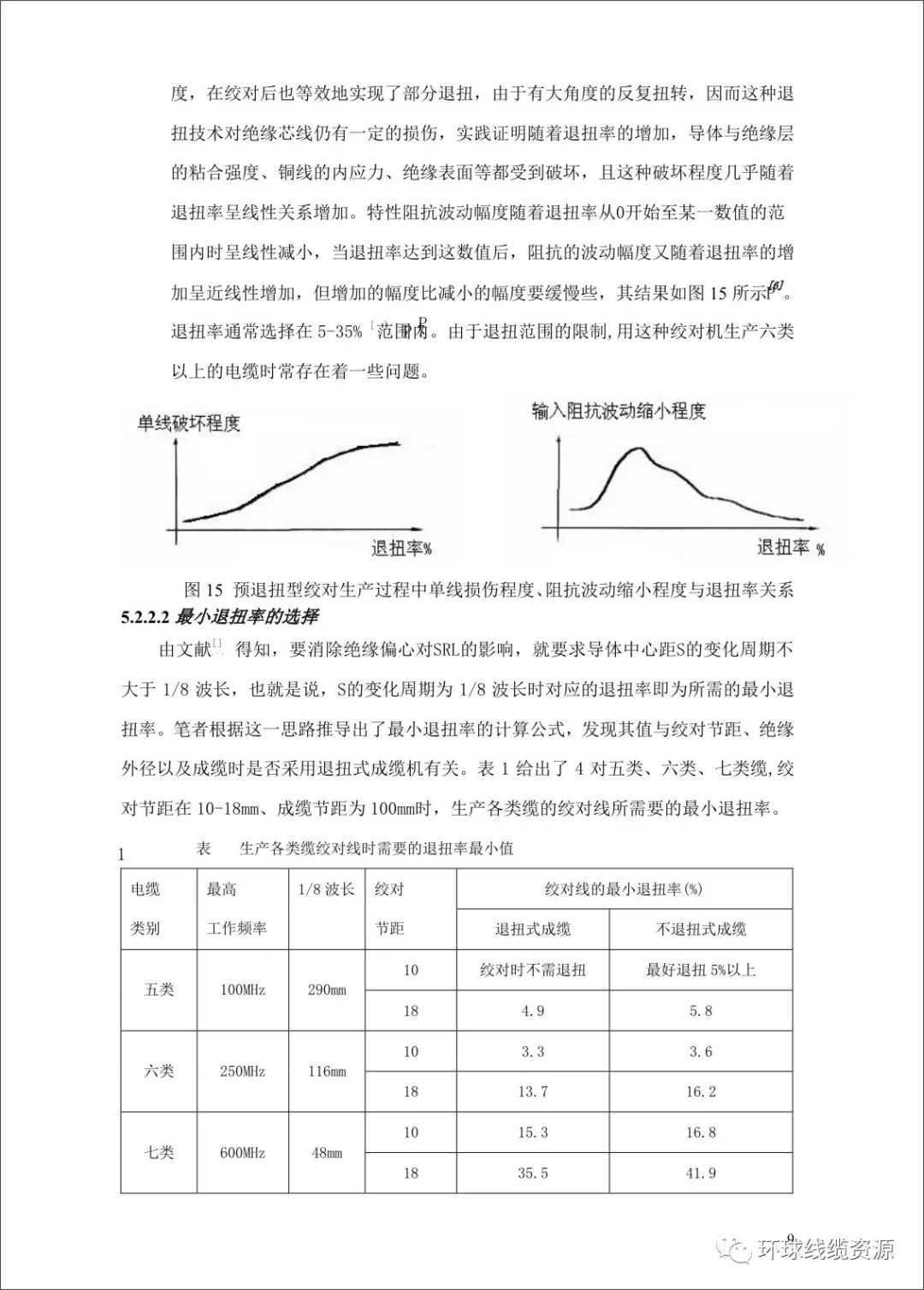 一、前言 随着计算机网络和数据通信的发展,人们对对称电缆的要求也越来越高,从几年前带宽为100MHz的五类缆到今天高达1000MHz的数据缆,无疑是一个巨大的飞跃。众所周知,同轴缆的电磁场是封闭的、规则的。达到1000MHz的带宽是比较容易的。然而,对称电缆的电磁场是开放的,既不规则也不均匀,要制造高频对称电缆其难度可想而知。很多时候,电缆制造商制造出了符合要求的某些指标恶化了许多,尤其是近端串音衰减和结构回波损耗两项指标,所有这些,归根到底都与电缆结构设计和制造工艺有关。本篇以1对、2对、4对高频对称电缆的设计为例,对设计中的一些有关问题进行了探讨,有关于制造技术将在另一篇论文中论述 二、高频对称电缆的几个重要电性能指标及其改善措施 (一)串音 串音引起的误码是影响通信距离的主要因素之一。根据串音产生的机理,减少线对间串音的方法有: 1.保证绝缘单线的均匀性和对称性、尽可能降低线对间电容不平衡是提高线对抗干扰能力的基础; 2.在条件允许情况下,加大线对间的距离; 3.采用优化的节距设计是提高串音防卫度的有力措施; 4.采用线对屏蔽技术、但此种方法因电磁波的反射,需要适当增加绝缘外径、使用时也需要带屏蔽的接插件; 5.保证相邻线对维持TEM波传输也可有效地减少串音,这也是高频对称电缆设计中可用的另一种理念。我们知道、传统对绞线结构的电缆中,在对绞线的中心有很强的电场,并有很大一部分泄漏于绝缘层外。如果在对绞线外层再挤包一层与绝缘具有相同的等效相对介电常数且损耗角正切值低的护套(挤压式),则大部分电磁场分布在绝缘和护套内,有效减少电力线从绝缘体散发出去,因而从源头上减小了对相邻线对的串音。另一方面,电磁波在绝缘体周围的空气中传播速度C空,(C空≈C0,其中C0为真空中传播速度)大于绝缘体内的传播速度C绝(C绝=C0/√εe,其中εe为电缆的等效相对介电常数),即C空>C绝。电磁场的这种不均匀性作用下,会同时产生沿传播方向的电磁矢量以及垂直于传播方向的电磁能量,从而引起串音增加。因此,围绕线对的护套愈厚,串音改善就愈明显。然而,由于介质损耗的原因,用这种方式来控制串音却会导致衰减增加。 但是,为了保证电缆一定的特性阻抗值,由于护套的加人则需要增加绝缘外径或增加绝缘的发泡度,最终电缆的衰减并不会增加多少,有时反而略低。另外,当串音得到有效控制时,即使信号衰减增加了,但传输信号时的信噪比却增加了。因此,为了尽可能降低衰减,采用这种思路设计的电缆通常采用泡沫绝缘和护套。 (二)特性阻抗与结构回波损耗 特性阻抗Zc,是电缆回路上任意点电压波与电流波之比,并与电缆一次参数有如下关系: