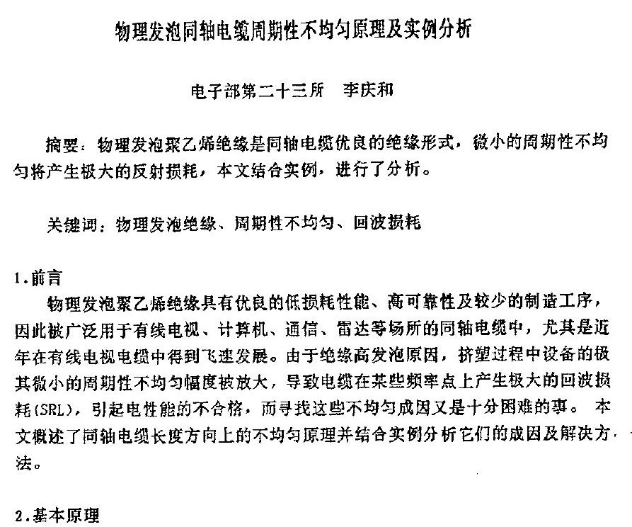谁有 物理发泡同轴电缆周期性不均匀原理及实例分析