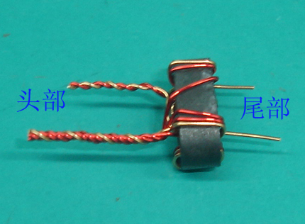 此磁环(头部)接在TV头后,尾部另接出两条线。磁环与TV头一起成型(内外模).